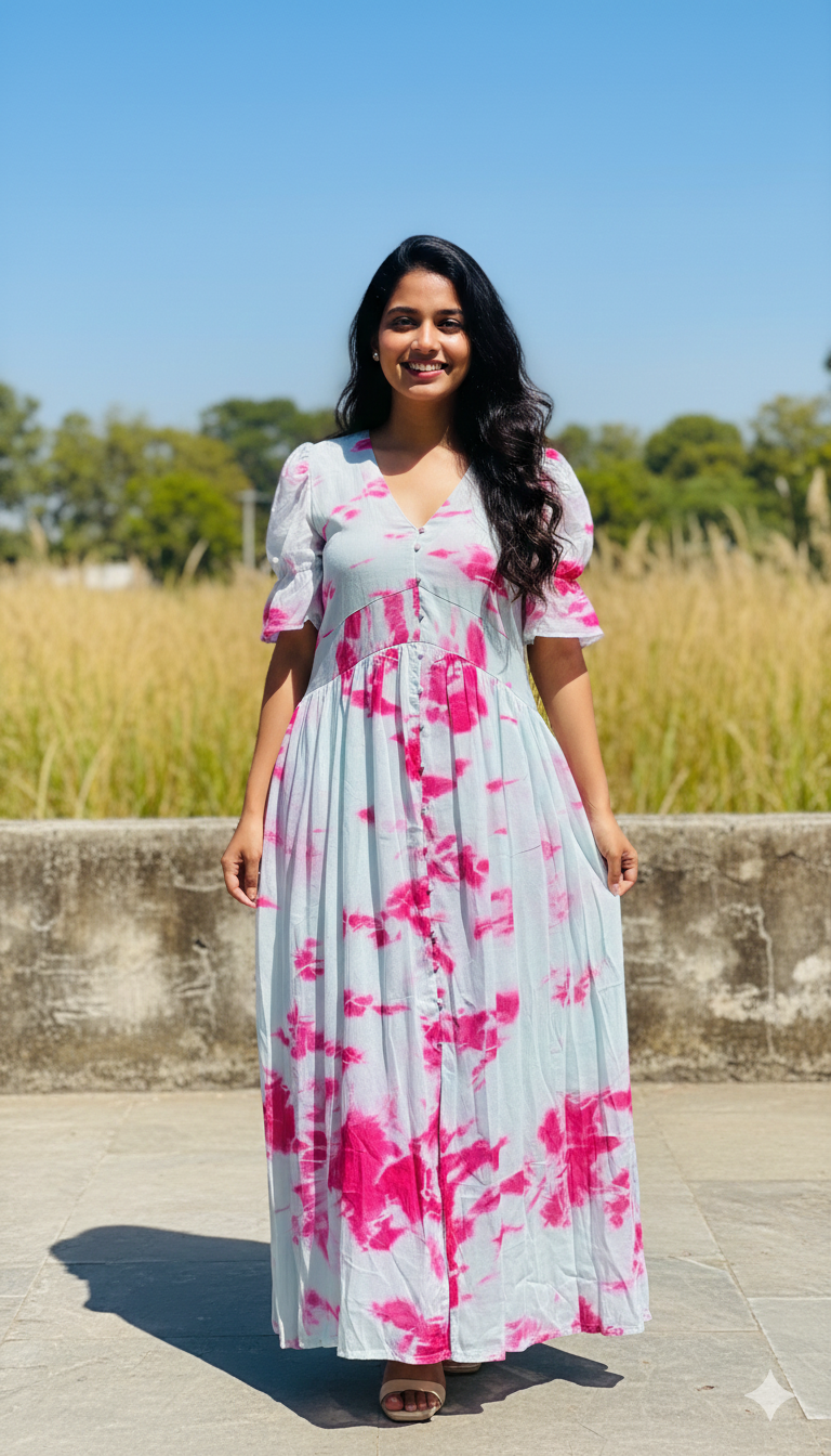 Make a statement with our Tie-Dye Maxi Gown, designed to bring effortless elegance and boho charm to your wardrobe. Featuring a beautiful tie-dye pattern, this gown blends vibrant hues with a flowing silhouette for a graceful and flattering look. Crafted from soft, breathable fabric, it ensures all-day comfort while keeping your style on point.